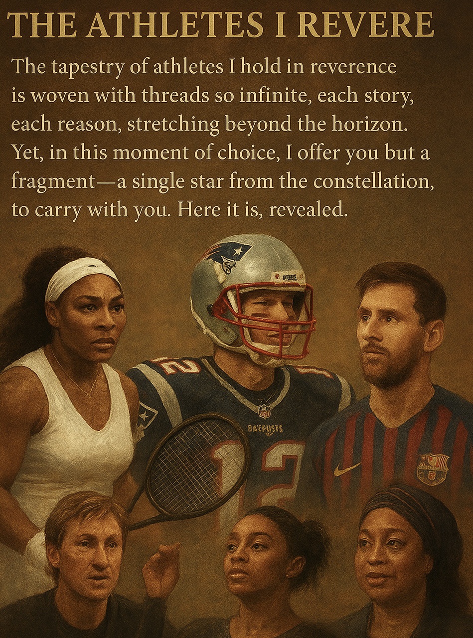 The tapestry of athletes I hold in reverence is woven with threads so infinite, each story, each reason, stretching beyond the horizon. Yet, in this moment of choice, I offer you but a fragment— a single star from the constellation, to carry with you. Here it is, revealed.